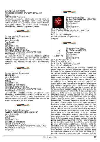(210) SENADI-2022-86283 uso culinario, compotas, leche condensada, smetana,