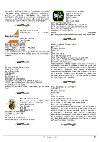 (210) SENADI-2022-92564 o veterinario, alimentos para bebés; suplementos