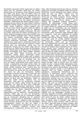 repelente para), semen para la inseminación artificial, iodo uso farmacéutico, pectina para uso farmacéutico,