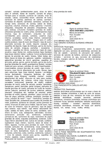 de cuero de imitación, ropa de gimnasia, ropa de papel, licores, ron, sidras, vinos, vodka, whisky
