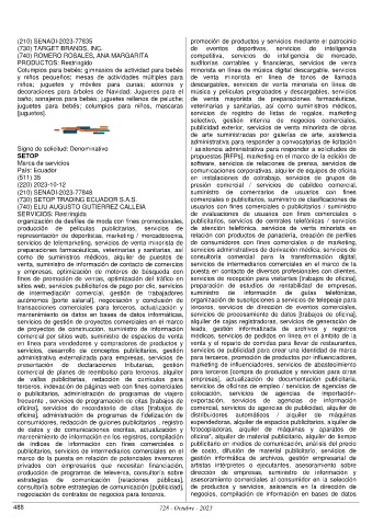 (730) SETOP TRADING ECUADOR S.A.S. comerciales o publicitarios, suministro de clasificaciones de
