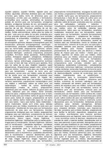 antiúricos, lápices antiverrugas, preparaciones químicas cloroformo, cocaína para uso médico, colirio, collares