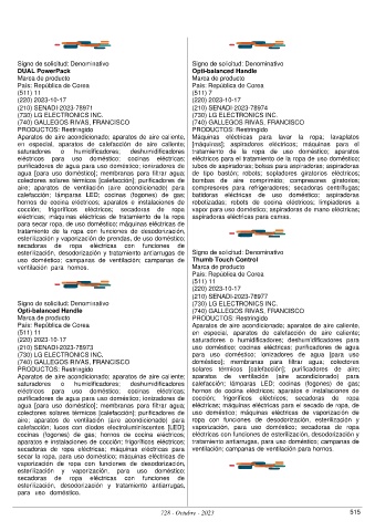 (220) 2023-10-17 saturadores o humidificadores; deshumidificadores para