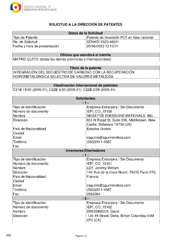 SOLICITUD A LA DIRECCIÓN DE PATENTES