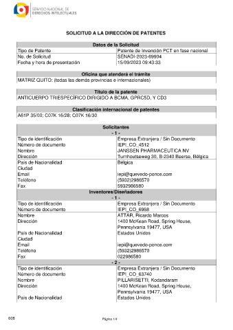 SOLICITUD A LA DIRECCIÓN DE PATENTES