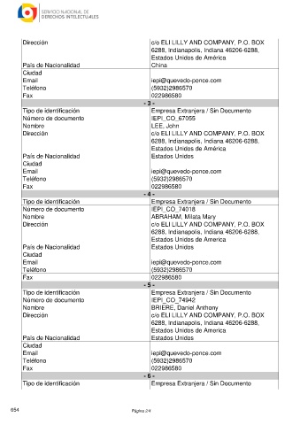 Dirección c/o ELI LILLY AND COMPANY, P.O. BOX