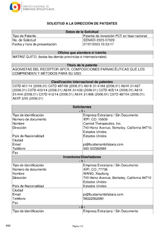 SOLICITUD A LA DIRECCIÓN DE PATENTES