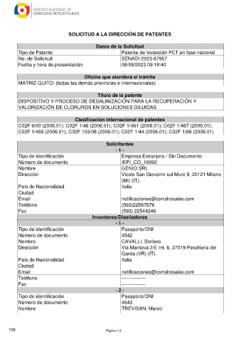 SOLICITUD A LA DIRECCIÓN DE PATENTES