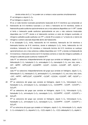 W es un resto bicíclico fusionado parcialmente insaturado de 8-10 miembros que comprende un