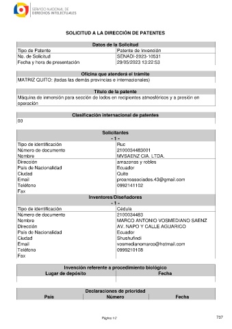 SOLICITUD A LA DIRECCIÓN DE PATENTES