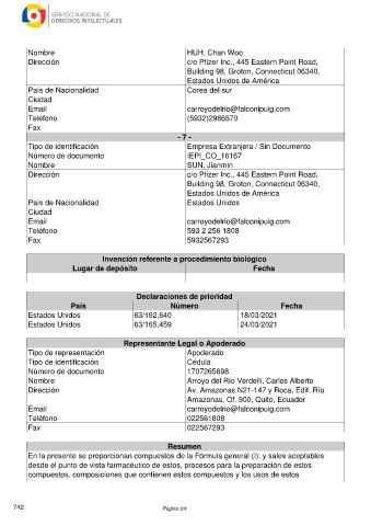Dirección c/o Pfizer Inc., 445 Eastern Point Road,