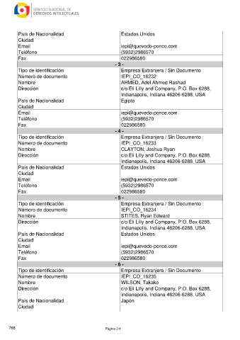 Dirección c/o Eli Lilly and Company, P.O. Box 6288,