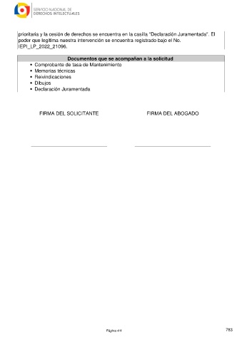 prioritaria y la cesión de derechos se encuentra en la casilla "Declaración Juramentada". El