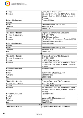 Dirección c/o Array BioPharma Inc. 3200 Walnut Street