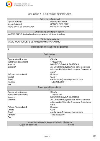 SOLICITUD A LA DIRECCIÓN DE PATENTES