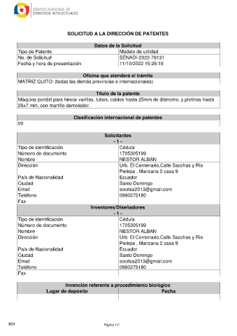SOLICITUD A LA DIRECCIÓN DE PATENTES