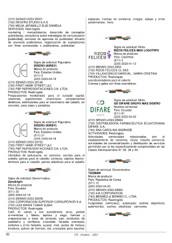 (210) SENADI-2023-28001 especias, hierbas en conserva; vinagre, salsas y otros