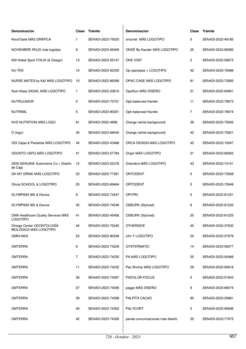 O (logo) 35 SENADI-2023-68045 Orange (white background) 42 SENADI-2023-75921
